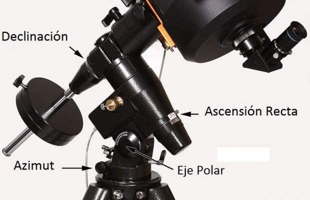 ¡Ojo! si tienes una montura como la de la foto (EQ3-2, EQ5, CG4, CG5, EXOS-2, etc.) revisa que el tornillo de AR esté suelto. Cuando este tornillo está apretado, acaba bloquando todo el eje de ascensión recta.