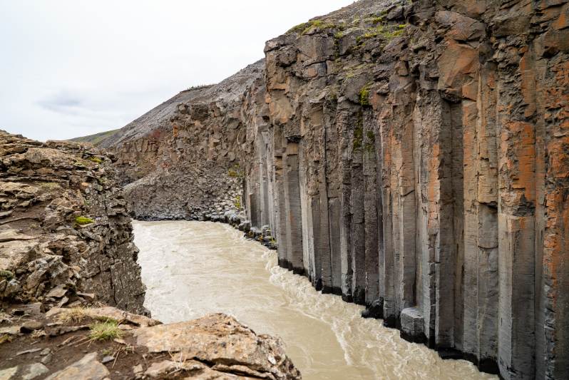 Por la tarde proseguiremos en dirección a Egilsstadir. Poco antes de llegar nos desviaremos para visitar el espectacular cañón de columnas de basalto de Studlagil, uno de los lugares más fotografiados del norte del país.