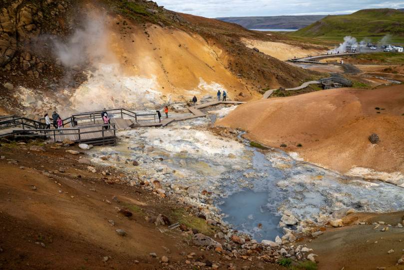 Después visita a la cueva de Grjótagjá, donde se rodó una escena de Juego de Tronos y Hverir, con sus famosas solfatarras, fumaloras y pozos de barro ardientes.