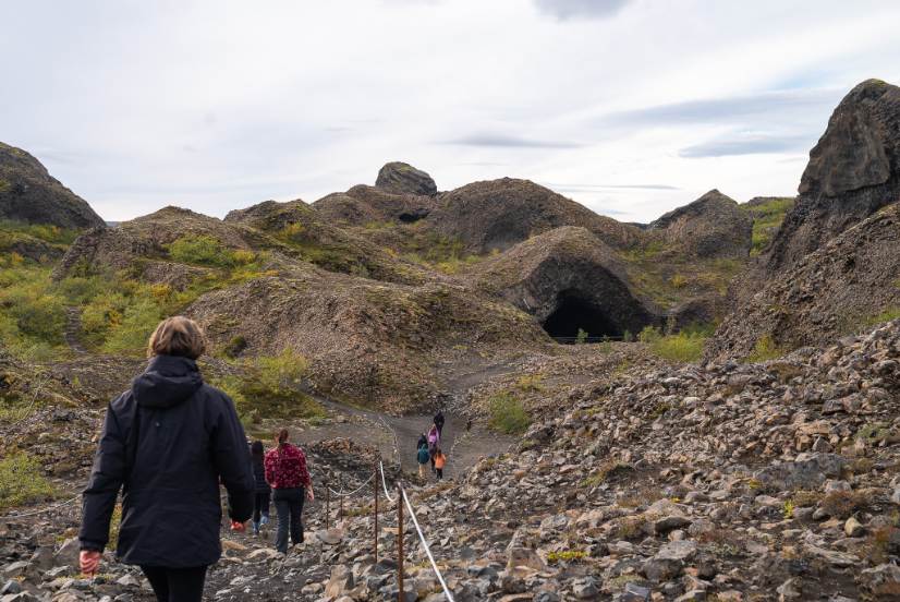 Llegada a media mañana al lago Mývatn, donde caminaremos por los campos de lavas de Dimmuborgir y subiremos hasta el borde del cráter de Hverfjall, que con un diámetro de más de 1 kilómetro, es de los más grandes del país.